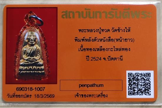 หลวงปู่ทวด รุ่นตำหนักทอง หลวงปู่ทอง สุสังวโร วัดป่ากอสุวรรณาราม อ.นาหม่อม จ.สงขลา ปี2540 เนื้อผงแดงหลังติดแผ่นเงินตอกโค้ดตอกเลข พร้อมบัตร สุดคุ้ม |