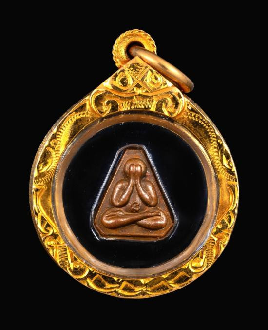 พระปิดตาอุตโมเนื้อตะกั่วผงทรายเสกยังเต็มทุกซอกลึกเลี่ยมทองพร้อมแขวน |
