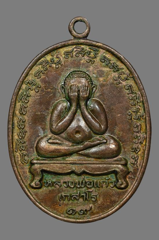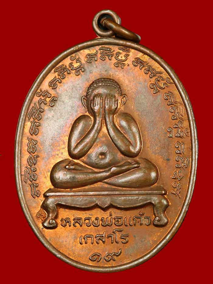 เหรียญปิดตาหลวงพ่อแก้ว เกสาโร เนื้อทองแดง สภาพสวย พร้อมบัตรรับรอง |