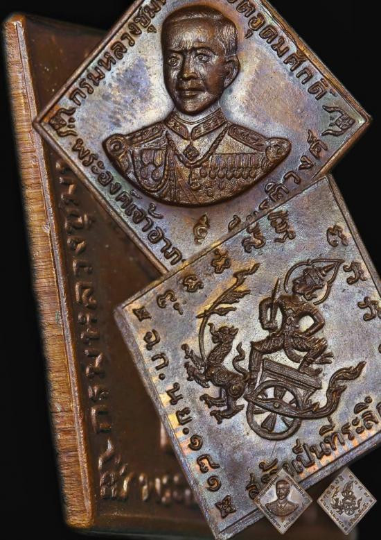 เหรียญกรมหลวงชุมพร ปากน้ำประแสร์ จ.ระยอง ปี 2512 เนื้อทองแดงรมน้ำตาล สภาพสวย เลี่ยมเงินยกซุ้มหนาๆ พร้อมบัตรรับรอง |