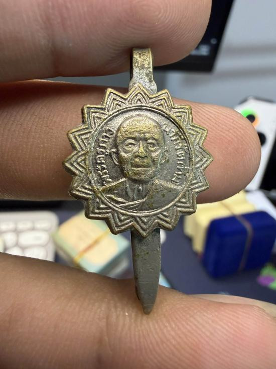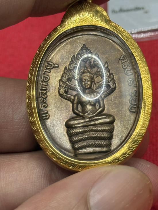 เหรียญหล่อฉลุ เนื้อนวะโลหะ ปี 2518 พร้อมเลี่ยมทองหนาๆสวยๆๆ |