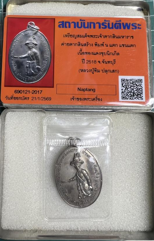 (เคาะเดียวแดง) เหรียญสมเด็จพระเจ้าตากสินมหาราช ปี 2518 กรรมการ เนื้อทองแดงชุบนิกเกิล สร้าง 310 เหรียญ พร้อมบัตรรับรองของทางเว็บ |