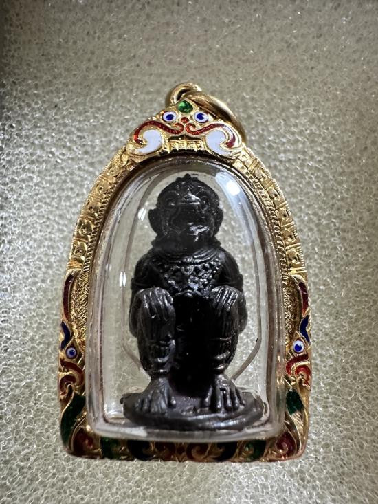 หนุมาน 500 อุดผงดำพรายกุมาร เนื้อนวะโลหะ เลี่ยมทอง 6.74 g (G 81%) พร้อมบัตรรับรองพระ และ เลี่ยมทอง |