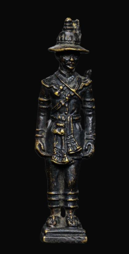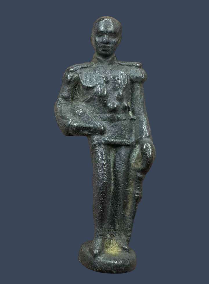 รูปหล่อพระเจ้าตาก เนื้อทองเหลืองรมดำ ปี2518 พร้อมบัตรรับรอง |