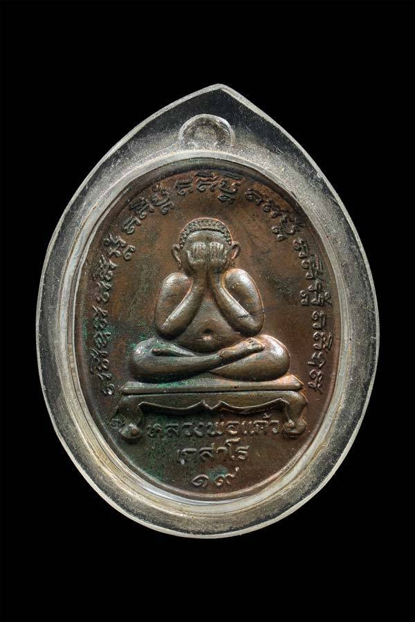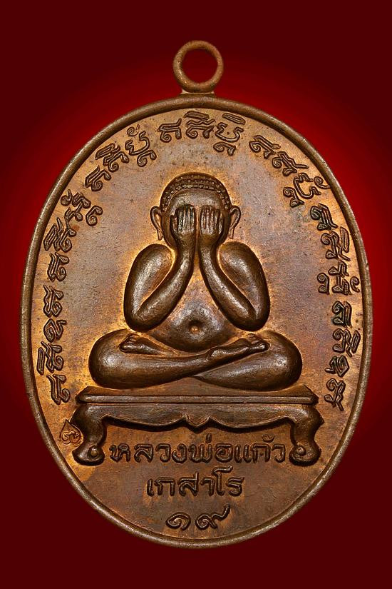 เหรียญพระปิดตา หลวงปู่แก้ว เกสาโร รุ่นแรก เนื้อทองแดงแช่น้ำมันงา |
