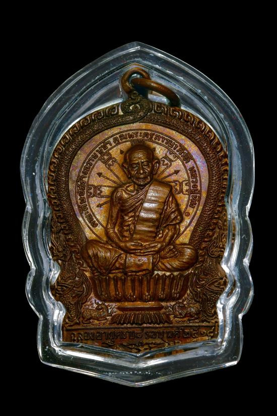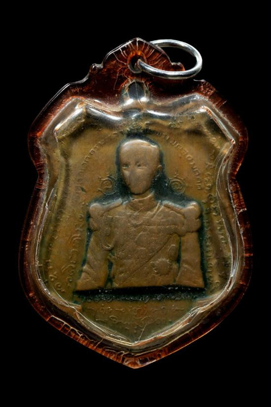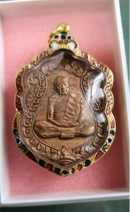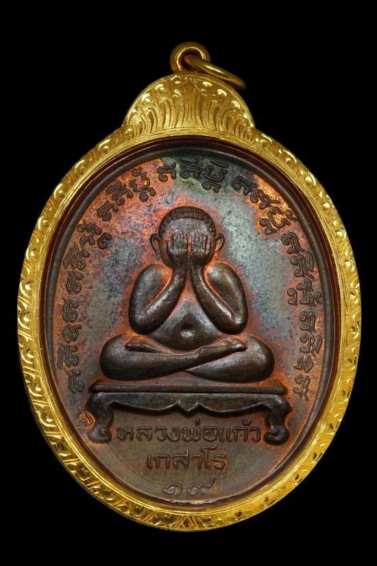 เหรียญปิดตาหลังรูปเหมือน เนื้อนวะ เลี่ยมทองสามห่วง |