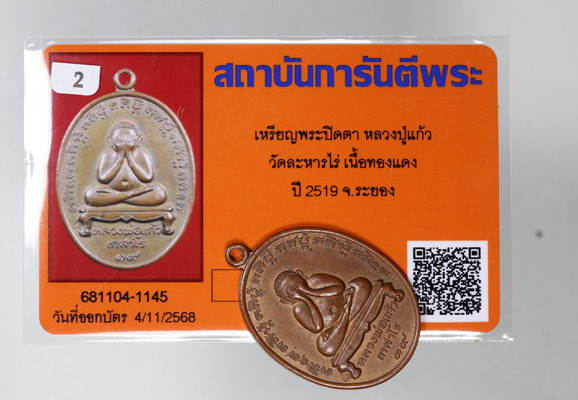 วัดใจ เหรียญพระปิดตา รุ่นแรก หลวงปู่แก้ว เกสาโร เนื้อทองแดง บล็อกนวะ สภาพสวยเดิม |