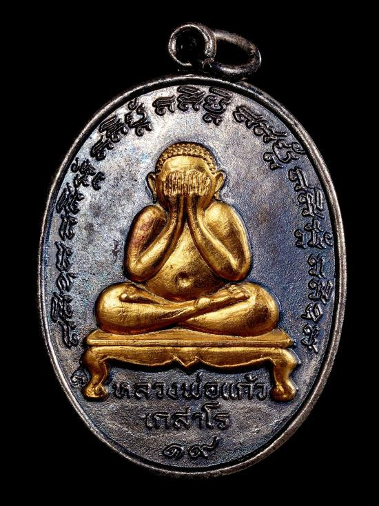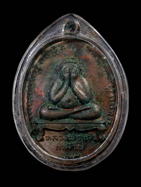 วัดใจ ปรกมะขาม รุ่นแรก หลวงปู่แก้ว เกสาโร เนื้อเงิน พร้อมบัตรจีพระ เลี่ยมเก่า |