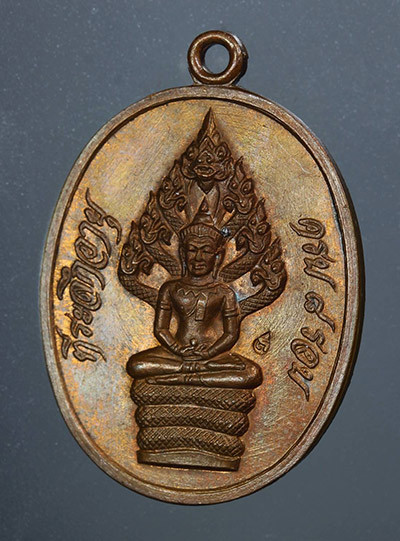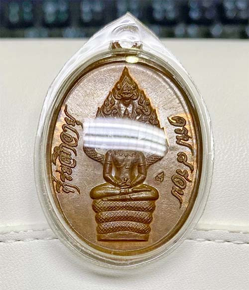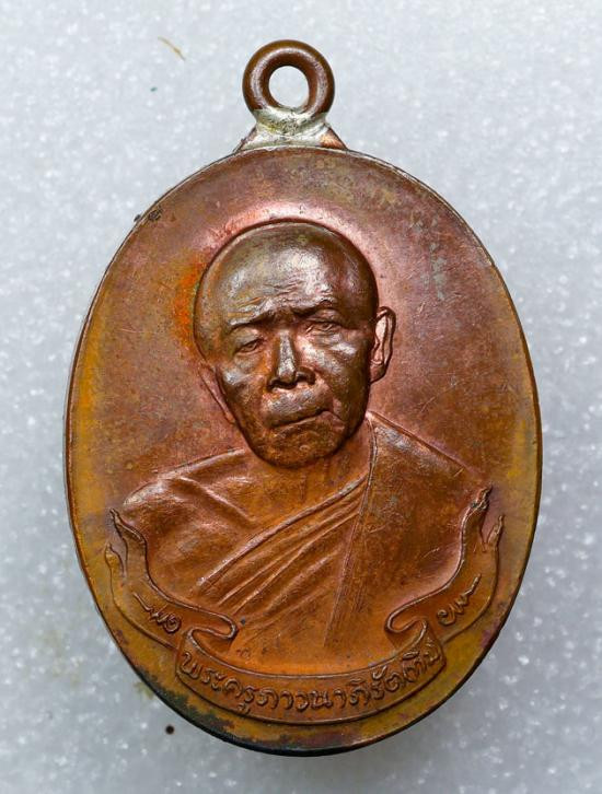เหรียญพระนาคปรก หลวงปู่ทิม วัดละหารไร่ รุ่นไตรมาส พิมพ์อุสั้น เนื้อทองแดง ปี 2518 จ.ระยอง (โค้ดอิ) พร้อมบัตรG |