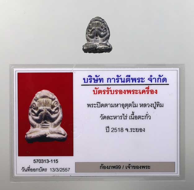 ปิดตาอุตตะโม หลวงปู่ทิม เนื้อตะกั่วปี 2518 พระคมชัด พร้อมบัตรรับรอง |