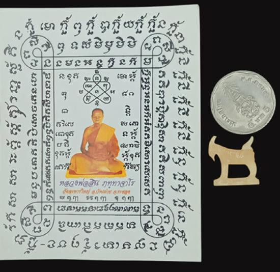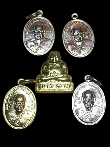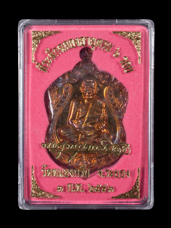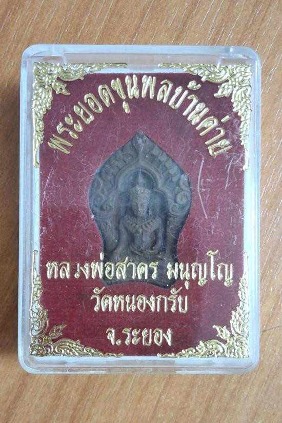 พระยอดขุนพลบ้านค่าย เนื้อสำริด no.10148 พระขุนแผนผงพรายกุมาร พิมพ์ใหญ่ รุ่น "พรายทอง" ปี 2554 หลังฝังพลอย no. 9267 ลพ.สาคร วัดหนองกรับ จ.ระยอง |