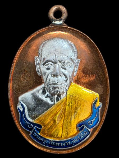 เหรียญเจริญพร ไตรมาส 55 หลวงพ่อสาคร วัดหนองกรับ จ.ระยอง เนื้อทองแดงลงยา |