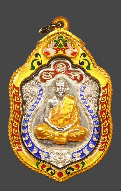 เหรียญเสมา 6 รอบหลวงพ่อสาคร เนื้อเงินหน้ากากเงิน ลงยา 3 สี เลข #103 มาพร้อมกล่องเดิมๆและบัตร GPra |