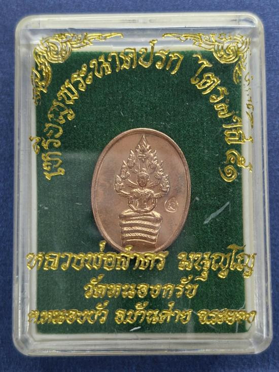 เหรียญเจริญพร ไตรมาส54 หลวงพ่อสิน วัดละหารใหญ่ เนื้อทองแดง เลข8589 พร้อมกล่องเดิมๆ |