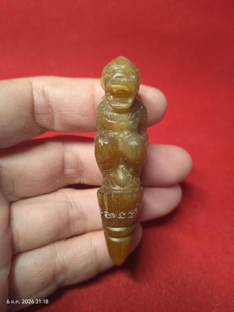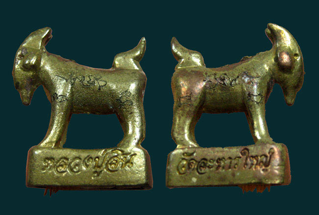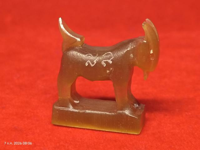 (คัดสวย ตัวใหญ่ เคาะเดียว)แพะ หลวงพ่อสิน แกะสลักเนื้อเขาควายเผือก สีน้ำผึ้งนิยม |