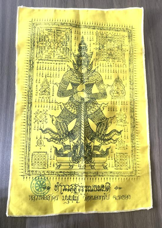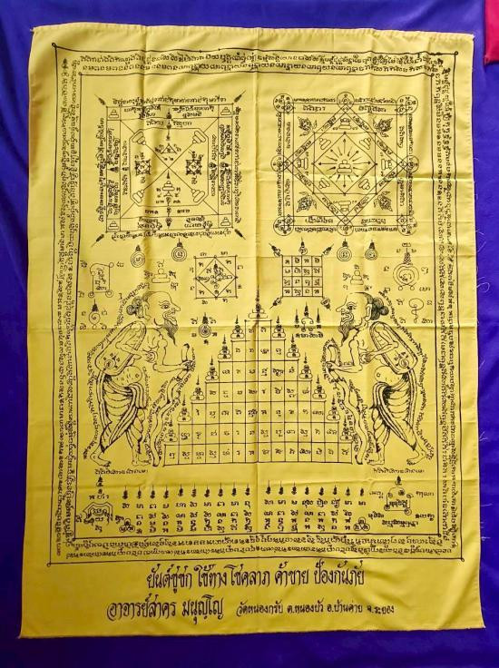 ผ้ายันต์ชูชก ผืนใหญ่ พระครูมนูญธรรมวัตร (พ่อสาคร มนุญโญ) วัดหนองกรับ จ.ระยอง ทันหลวงพ่อครับ ขนาด 66 X 89 ซ.ม. |