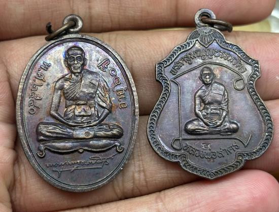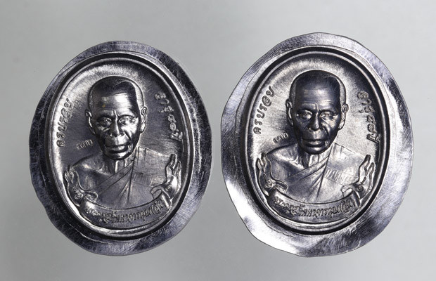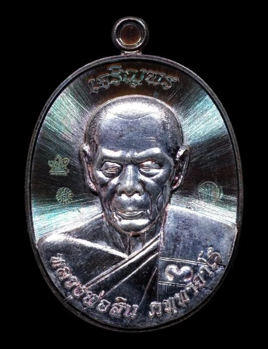เหรียญเจริญพร (บน) เนื้อนวะหน้ากากเงิน หลวงพ่อสิน วัดละหารใหญ่ บ้านค่าย จังหวัดระยอง แดงเคาะแรก |