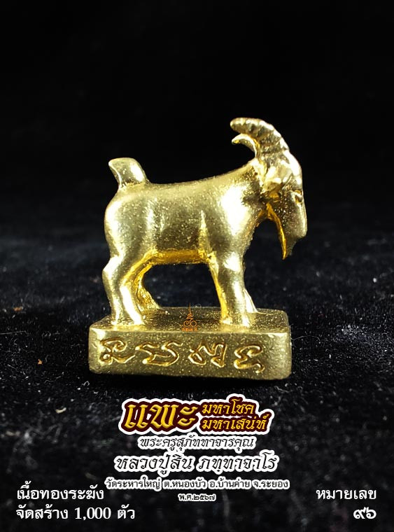 (คัดสวย เคาะเดียว 200) แพะ หลวงพ่อสิน แกะสลักเนื้อเขาควายเผือก สีน้ำผึ้งนิยม |