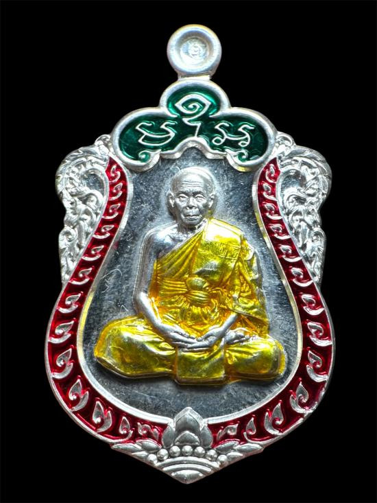 เหรียญเสมาผูกพัทธสีมา ปี 2558 เนื้อเงินลงยา กรรมการ หลวงพ่อสิน วัดละหารใหญ่ จ.ระยอง พร้อมกล่อง แดงเคาะแรก |