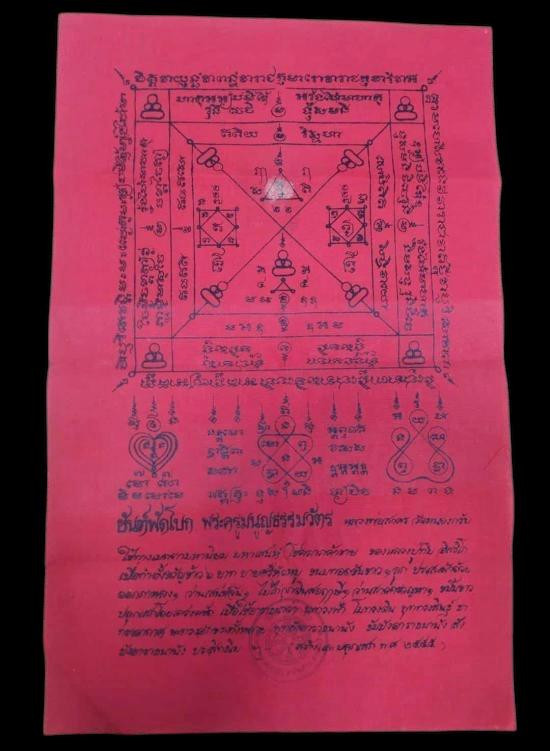 ผ้ายันต์พัดโบก ปี 2538 หลวงพ่อสาคร วัดหนองกรับ จังหวัดระยอง (สีชมพู) สวย ขนาด 22x22นิ้ว |