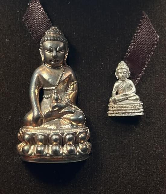 พระกริ่งชินบัญชร + พระชัยวัฒน์ชินบัญชร เนื้อนวะก้นเงินจาร หลวงพ่อสาครปี2556 ผิวสวยๆเลยชุดนี้ หมายเลข "944" |