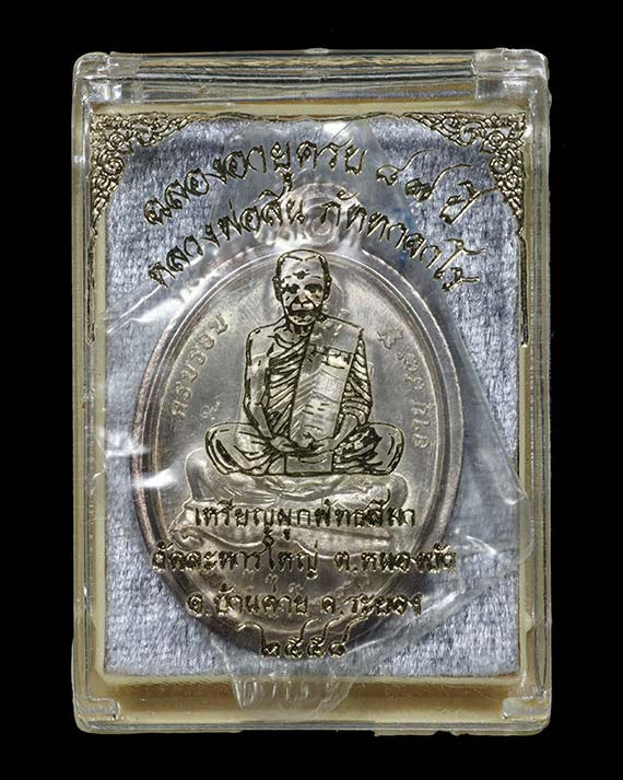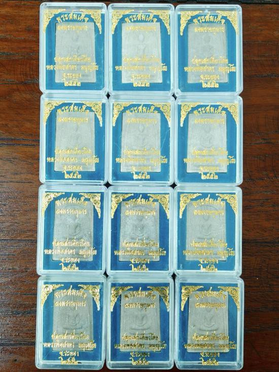 พระผงรูปเหมือนฐานปูปลา หน้ากากทองแดง ด้านหลัง 12 ปี นักษัตร ( ปีมะเส็ง ) พิมพ์เล็ก รุ่น พรายบูรพาราชาโชค สร้างอุโบสถ ปี 2550 เนื้อ ผงพรายกุมาร หมายเลข 167 พร้อมกล่องกำมหยี่เดิมจากวัด รุ่นประสบการณ์ |