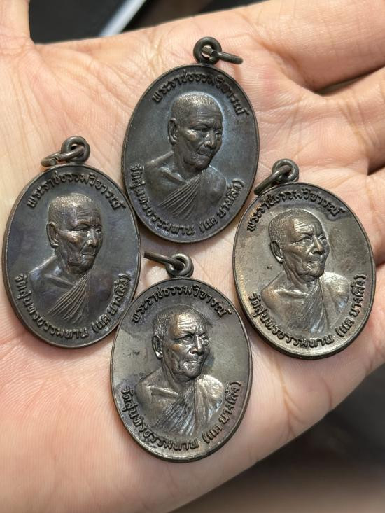 เหรียญท่านเจ้าคุณโพธิ์แจ้ง วัดโพธิ์แมน เนื้ออัลปาก้าปี 2516 สภาพตามรูปราคาเบาๆ |