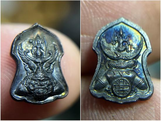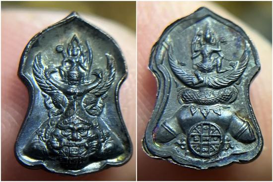 เคาะเดียว พระนารายณ์ทรงครุฑประทับบนพระราหู ท่านเจ้าคุณธงชัย วัดไตรมิตร เนื้อผงพุทธคุณ รุ่นแรก หลังยันต์ดวง ปี 2545 |