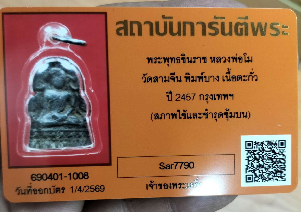 พระพุทธชินราช หลวงพ่อโม วัดสามจีน กทม. เนื้อตะกั่ว ปี 2457 |
