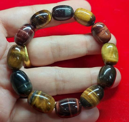 ***วัดใจ***สร้อยข้อหินไทเกอร์อาย 3 ทหารเสือ เม็ดใหญ่ พร้อมการ์ดคาถา คุณแม่บุญเรือน โตงบุญเติม วัดอาวุธฯ |