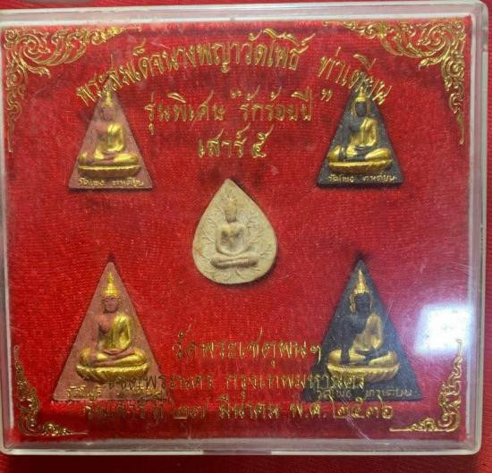 *วัดใจ* พระสมเด็จ ชุด 5 องค์ วัดบวรนิเวศวิหาร โรยผงเก่า แช่น้ำมนต์ ฝังตะกรุดทองคำ ปี2540 พร้อมกล่อง |