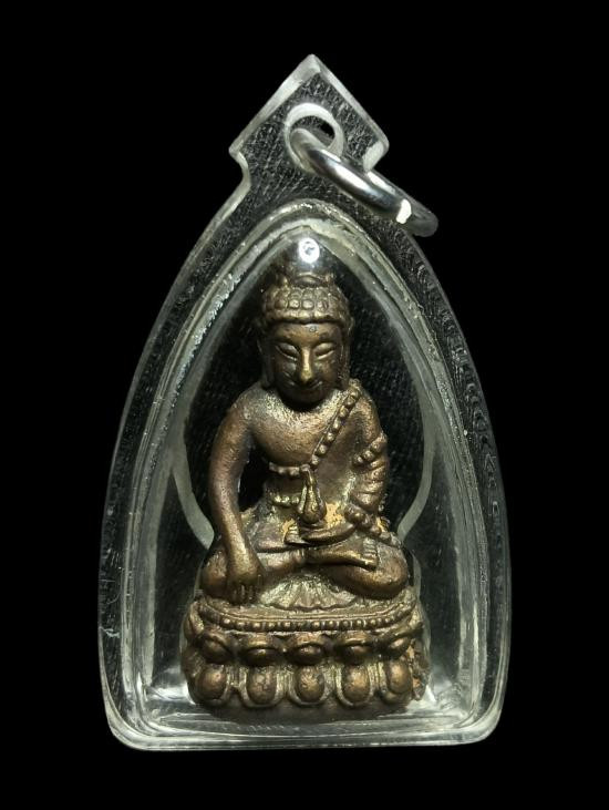 พระพุทโธน้อย แม่ชีบุญเรือน วัดอาวุธฯ พิมพ์เล็กหลังยันต์พุทโธ เนื้อผง ปี 2494 กรุงเทพฯ เลี่ยมทองหนา |