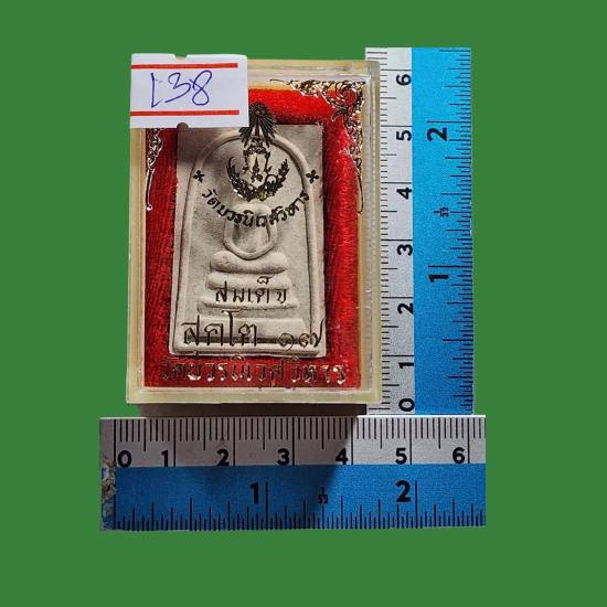 พระพุทธเมตตาเสนานาถ เนื้อผงพุทธคุณสีขาววัดพระศรีรัตนศาสดาราม (วัดพระแก้ว) จัดสร้างโดย กองทัพบก ปี ๒๕๔๔ พร้อมกล่อง มีจาร 3 ด้าน |