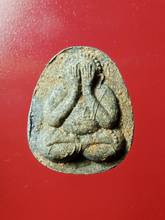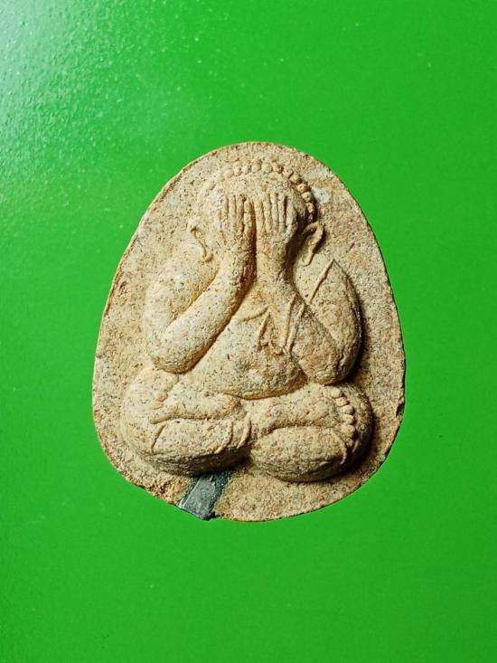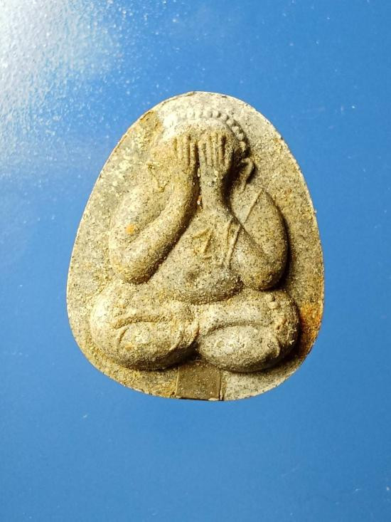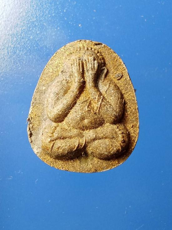 พระปิดตาหลังยันต์ดวง เนื้อ2สี เนื้อเกสรและเนื้อใบลาน มีคล้ายคราบน้ำมนต์ทั่วองค์พระ(15) |