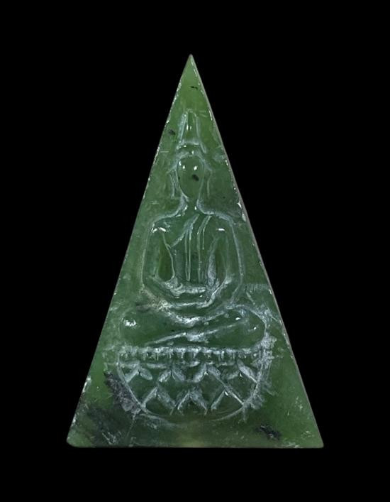 พระแก้วพิมพ์เล็กเนื้อใบตอง หลังโรยเกษาและผงตะไบทองครับ |