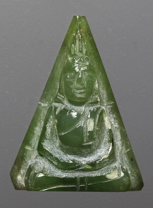 พระแก้วพิมพ์เล็กเนื้อใบตอง หลังโรยเกษาและผงตะไบทองครับ |