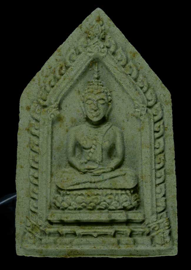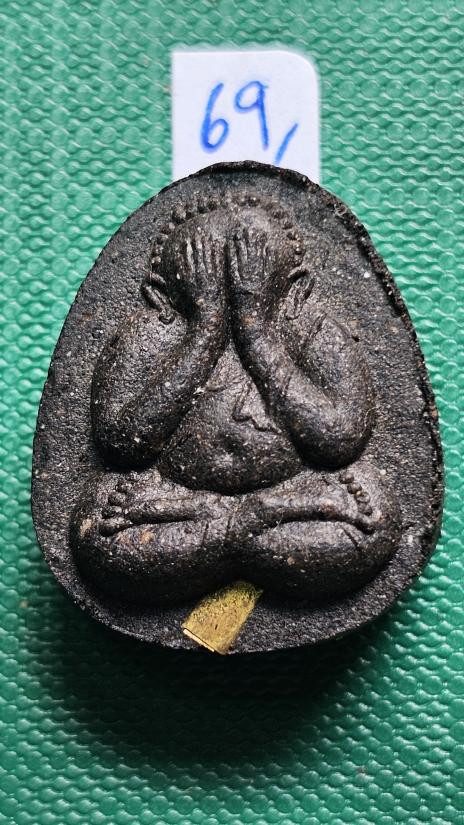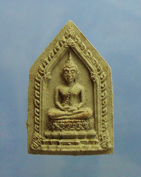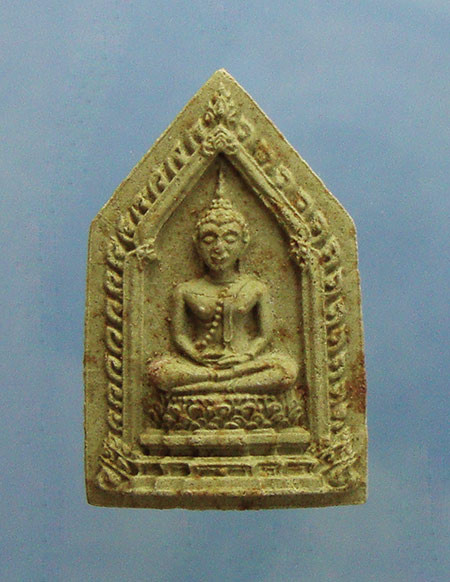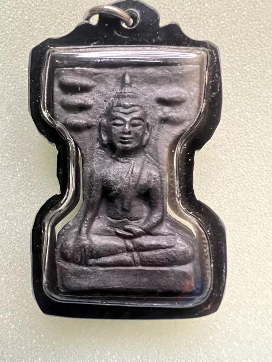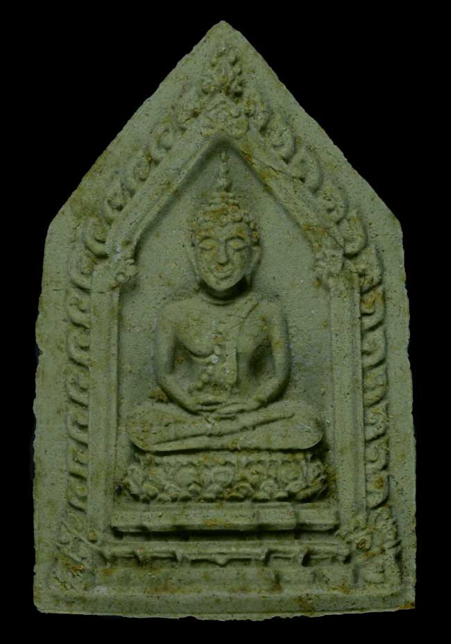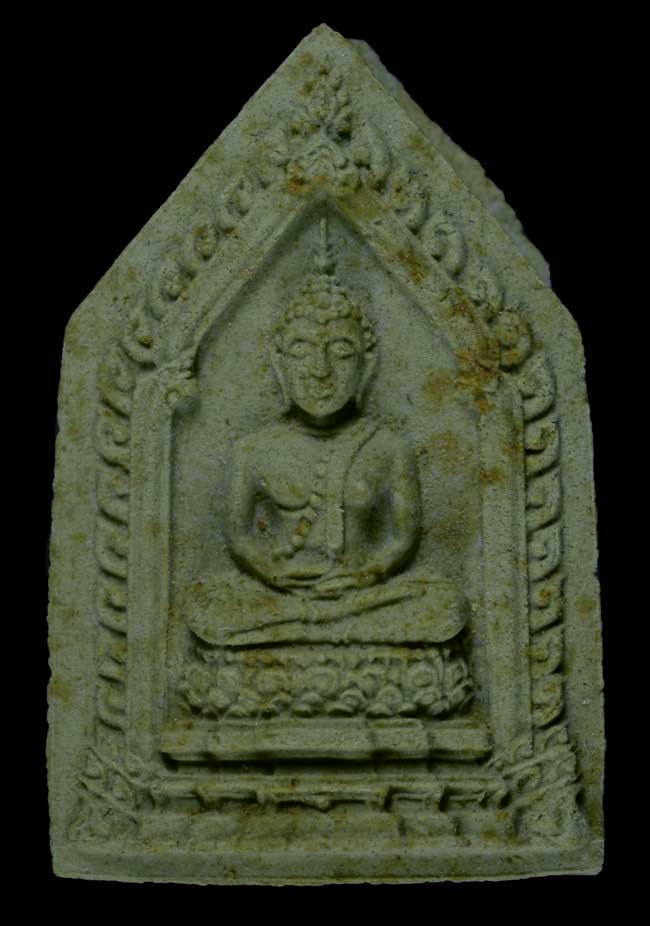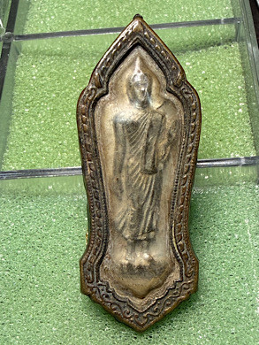 พระบัวเข็ม เนื้อเมฆพัตร หลวงพ่อชำนาญ วัดบางกุฎีทอง ปี 2545 ใต้ฐานมีรอยจารเดิมจากวัด |