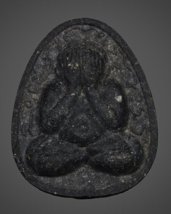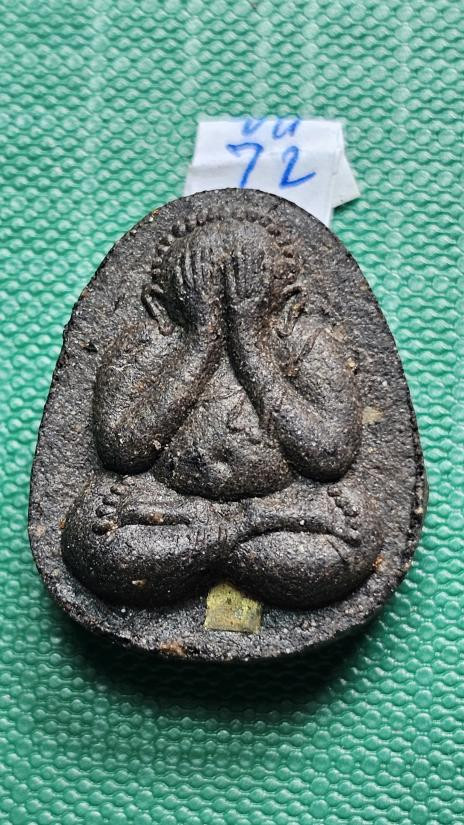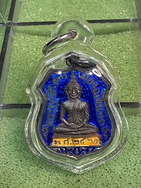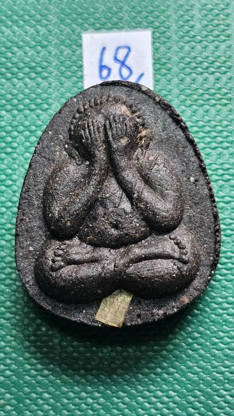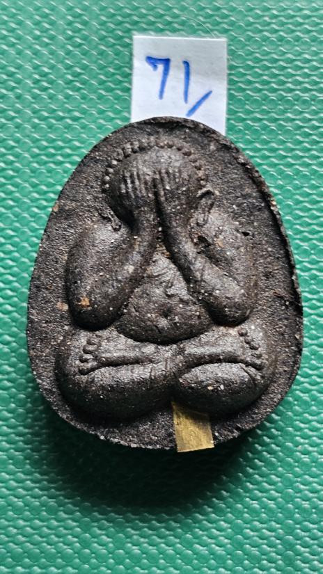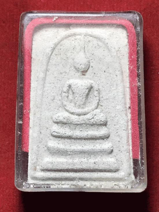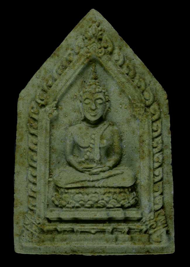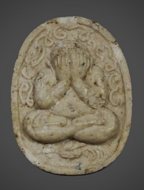 พระบัวเข็ม เนื้อเมฆพัตร หลวงพ่อชำนาญ วัดบางกุฎีทอง ปี 2545 ใต้ฐานมีรอยจารเดิมจากวัด |