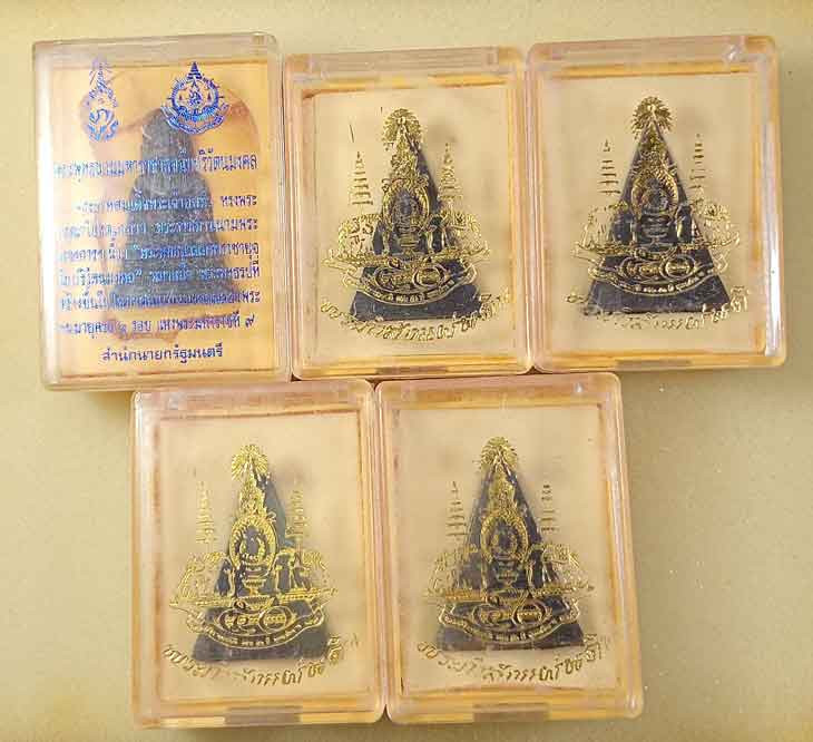 พระกริ่ง พระพุทธนวมมหาราชายุจฉับปริวัตนมงคล ภปร เนื้อโลหะผสม ฉลองพระชนมายุครบ 6 รอบ รัชกาลที่9 ปี2542 +พระกำลังแผ่นดิน สมเด็จจิตรลดา ฉลองสิริราชสมบัติครบ50ปี มวลสารจิตรลดา ฉลองปีกาญจนาภิเษกปี39 4องค์ |