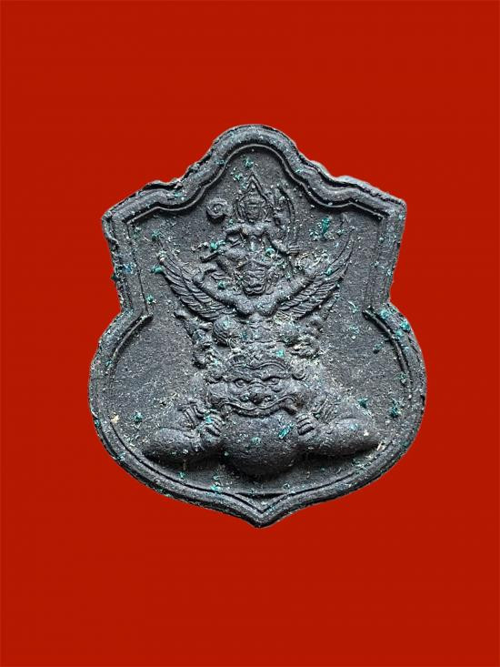 พระนารายณ์ทรงครุฑประทับบนพระราหู ท่านเจ้าคุณธงชัย วัดไตรมิตร เนื้อผงพุทธคุณ รุ่นแรก หลังยันต์ดวง ปี 2545 |
