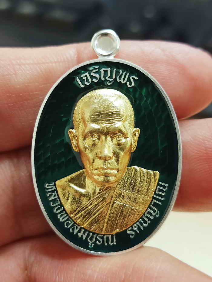 วัดใจ 100 เหรียญเจริญพรครึ่งองค์ รุ่นแรก หลวงพ่อสมบูรณ์ รตนญาโณ วัดหงส์รัตนารามราชวรวิหาร กรุงเทพ 2568 ปลอกลูกปืน ลงยาเขียว จีวร หมายเลข 96 กล่องเดิม |