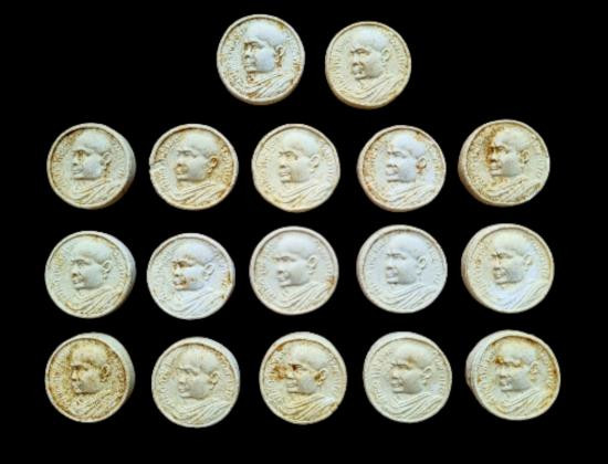 พระเนื้อผงเจ้าคุณนรฯ พิมพ์รูปเหมือนใบโพธิ์ ปี 2513 โค๊ดดอกจัน |