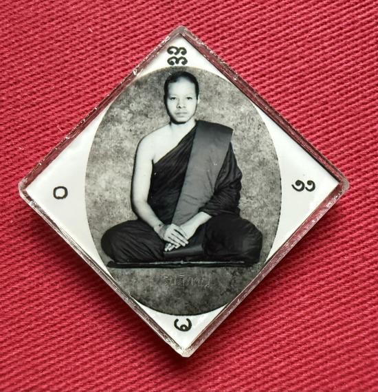 วัดใจไปเลย รูปถ่ายสีซีเปียพระอาจารย์เบ๊นซ์ วัดราชาธิวาส หลังแผ่นตะกั่วจารยันต์ ตอกเลข 70 |