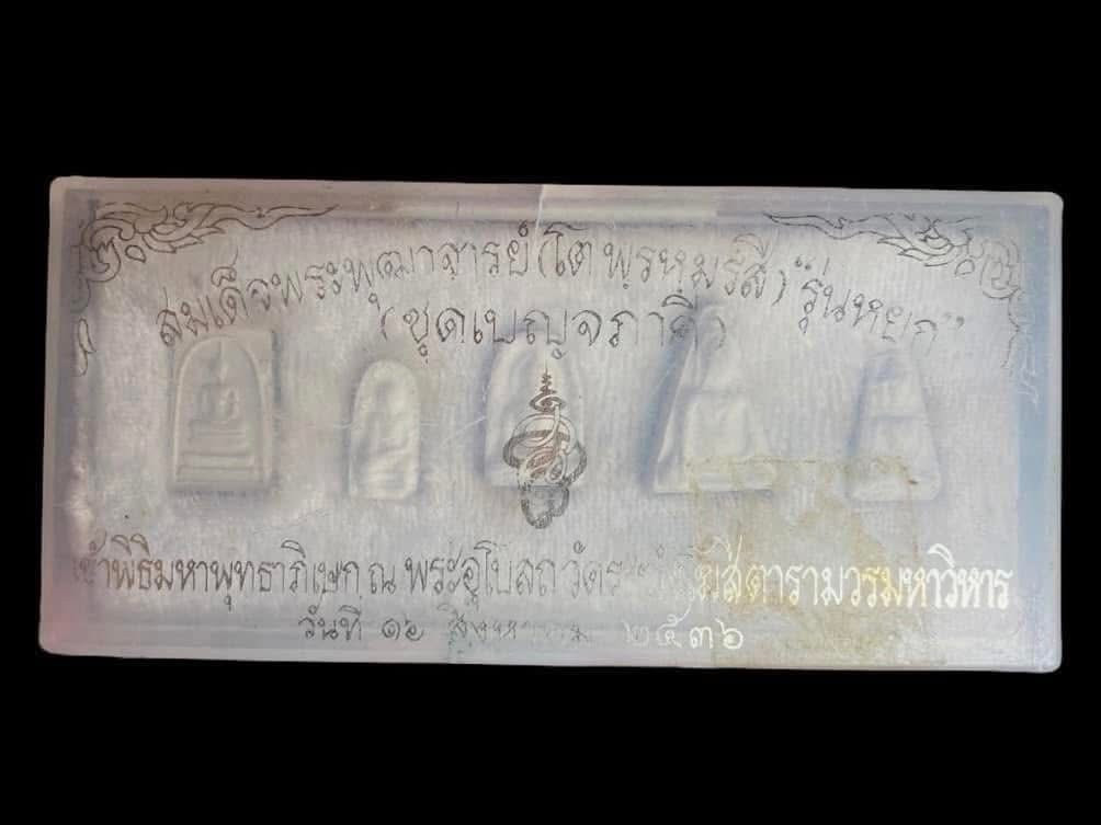 พระชุดเบญจภาคี "รุ่นหยก" วัดระฆังโฆสิตาราม ปี 2536 พร้อมกล่องเดิมๆ ! รุ่นนี้มีชื่อว่ารุ่นหยก มีทั้งหมด 5 พิมพ์ |