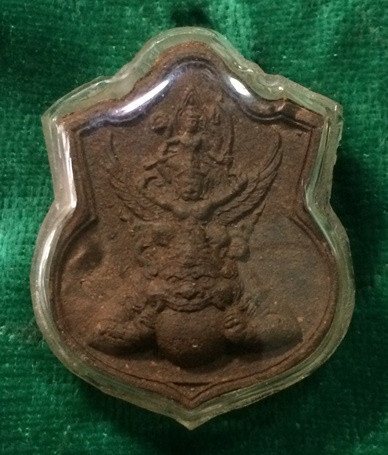 พระนารายณ์ทรงครุฑประทับบนพระราหู ท่านเจ้าคุณธงชัย วัดไตรมิตร เนื้อผงพุทธคุณ รุ่นแรก หลังยันต์ดวง ปี 2545 เนื้อน้ำตาล |
