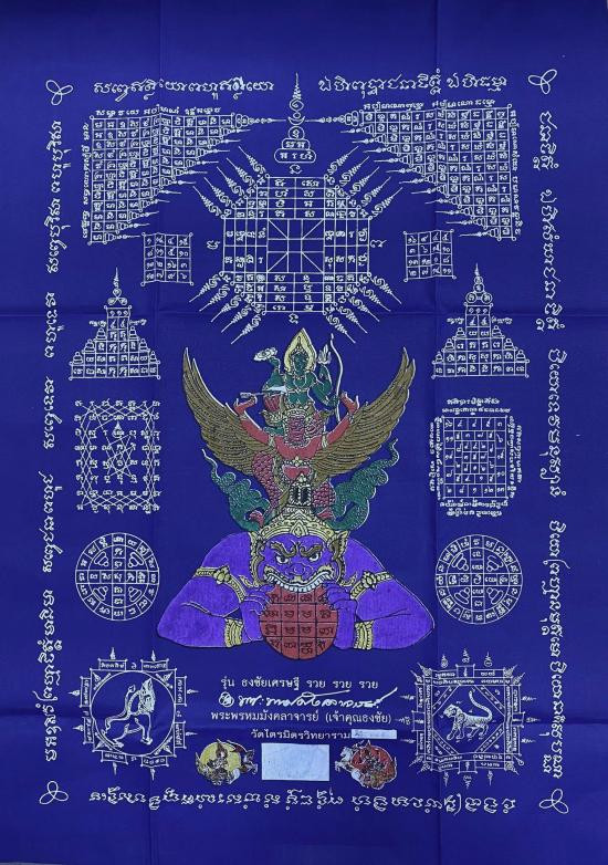 ผ้ายันต์พระนารายณ์ทรงครุฑประทับพระราหู เจ้าคุณธงชัย วัดไตรมิตรฯ รุ่น ธงชัยเศรษฐี รวย รวย รวย ผืนใหญ่ ขนาด70X50 ซม. No.699 |