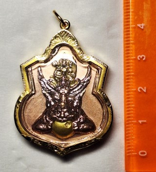เหรียญพระนารายณ์ทรงครุฑ ท่านเจ้าคุณธงชัย วัดไตรมิตรฯ เนื้อทองแดง ปี2545 เลี่ยมทองคำแท้ 76% จ.กรุงเทพฯ (กะไหล่สามกษัตริย์ใหม่) |