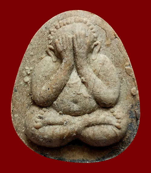 พระผงปิดตาพุทธเมตตา พิมพ์หยดน้ำหลังยันต์พุทซ้อน เนื้อผงพุทธคุณ หลวงปู่วิเวียร วัดดวงแข กทม. มีกล่อง |