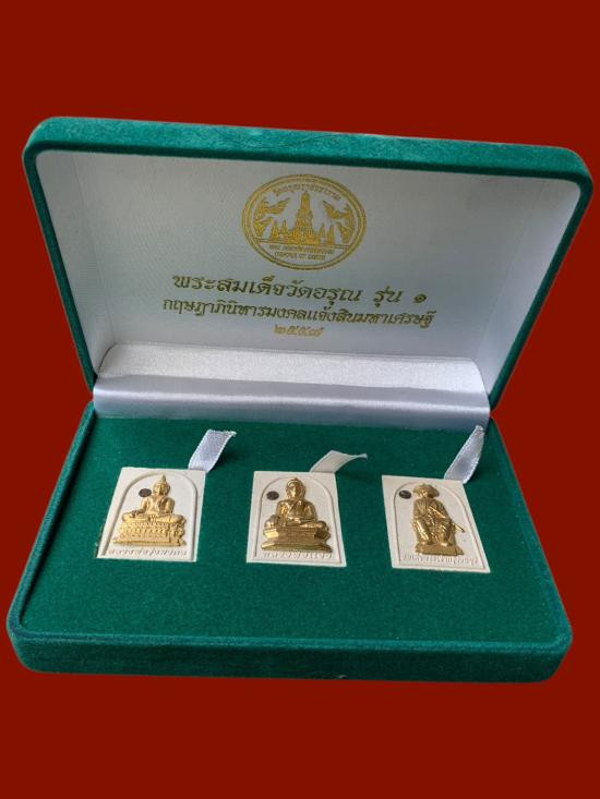 พระชุดมหามงคล สามปฐพี ข้าวสารหินพันปีผสมแร่เหล็กน้ำพี้ ชุด 3 องค์ เจ้าคุณฟู รุ่น1 วัดเวฬุราชิน กรุงเทพฯ ปี40 สวยคากล่องเดิม |