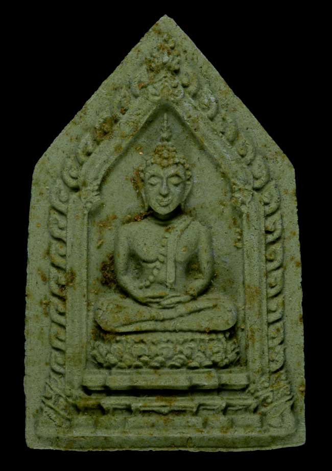พระพุทธสิหิง เนื้อเขียวพิมพ์เล็ก โรยผงตะไบทอง เกษา สภาพสวย |